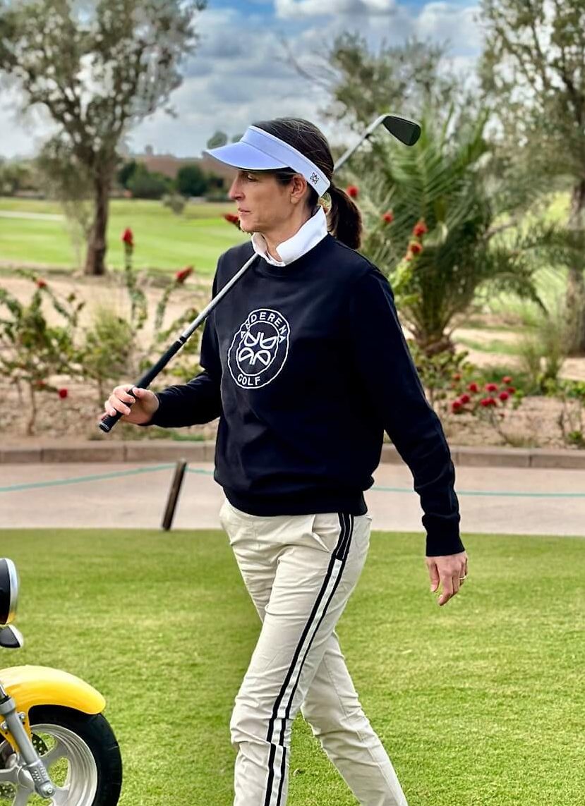 Golfeuse depuis son enfance, Frédérique jouait principalement l’été en vacance au pays basque. Originaire de l’industrie du numérique, elle a décidé de créer une marque 100% féminine au nom de Anderena (qui signifie femme en basque). Une capsule épurée, chic et pratique pour les golfeuses, aussi bien sur les green qu’en ville. Nous avons le plaisir de vous présenter cette nouvelle entrepreneuse dans le monde du golf.